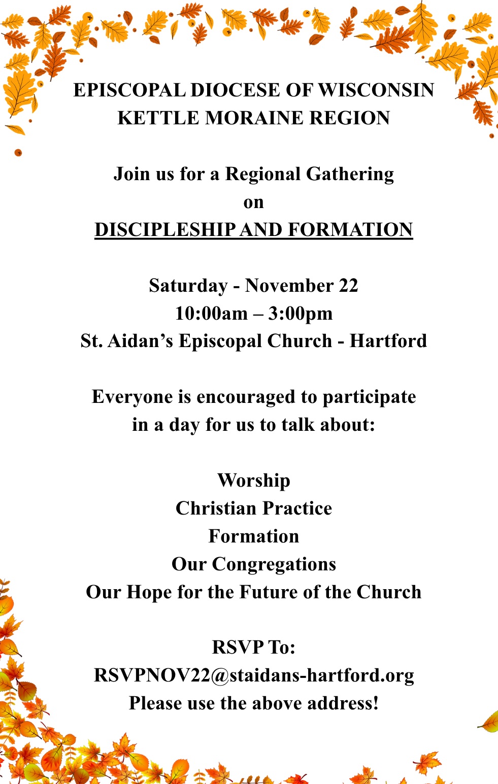 An upcoming ECW meeting is scheduled for Tuesday, November 11, 2025, at 6:30 p.m. The focus of the meeting will be discussion and a decision on a proposal to the vestry to replace some of the chairs in the parish hall. I am researching 3 options and will have these ready for discussion, along with ... [Read more...] |